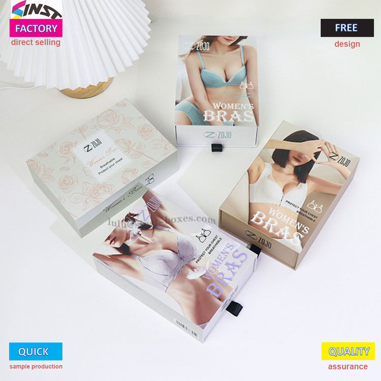 Kui valite sileda siidist aluspesu, tõstab selle sidumine siidist rinnahoidja kinkekarbiga suurepäraselt esile kanga tipptasemel tunde; Kui taotlete kvaliteeti, võib Premium rinnahoidja kinkekarbi peen trükkimine ja meisterlikkus stiili täielikult täiustada; Neile, kes naudivad pehmet ja armsat tunnet, puudutavad Cute bra kinkekarbil olevad värsked mustrid otse noorte tüdrukute südameid Ükskõik, millist tunnet soovite, saab seda kinkekarpi kohandada vastavalt aluspesu toonile ja seda saab kiiresti kohandada ilma liiga kaua ootamata.