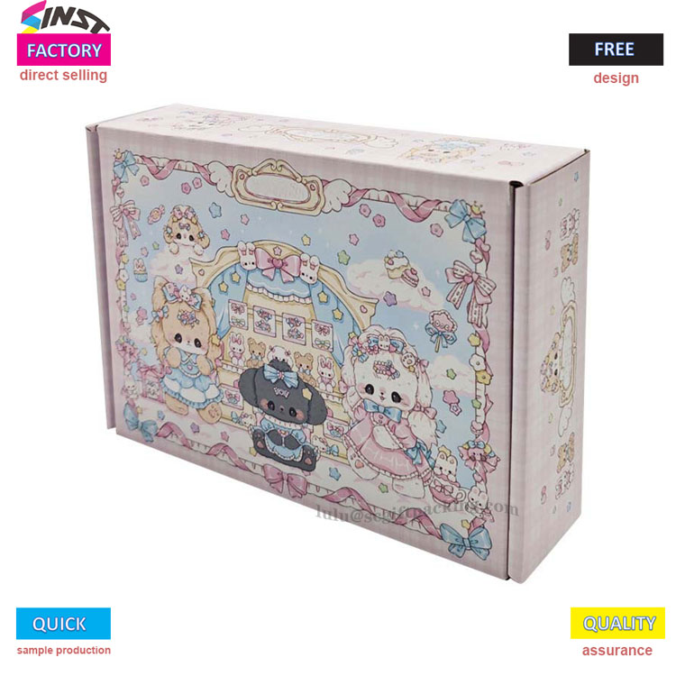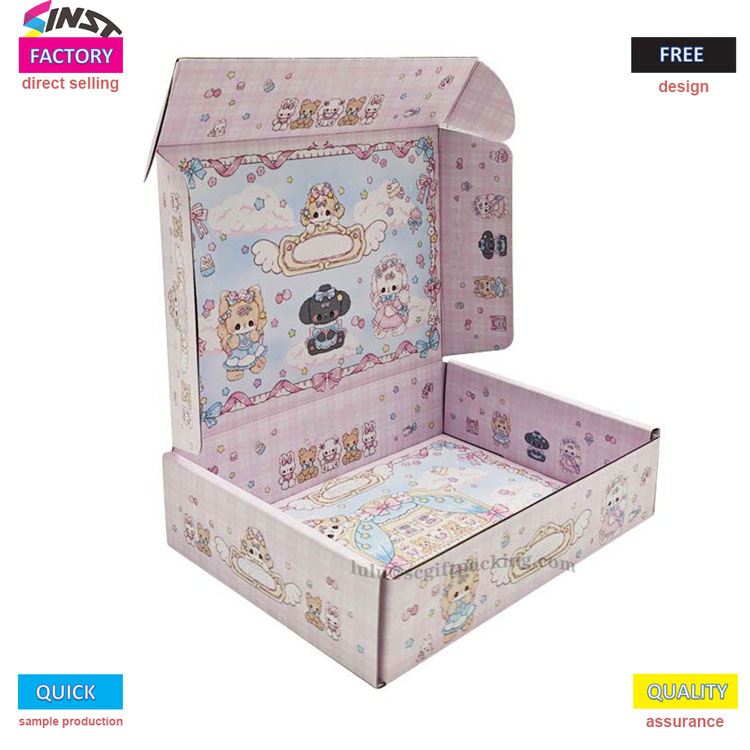 Riiete värvikas gofreeritud paberilennuki kastil on helesiniste aktsentidega magus roosa värviskeem. Karb on täidetud koomiksielementidega nagu lillemüürid, väikesed loomad, vibud, pilved ja südamed, luues unistava ja armsa stiili. Alates välimusest kuni teenuseni annab see täielikult rõivapakenditele ja suurendab brändi atraktiivsust.