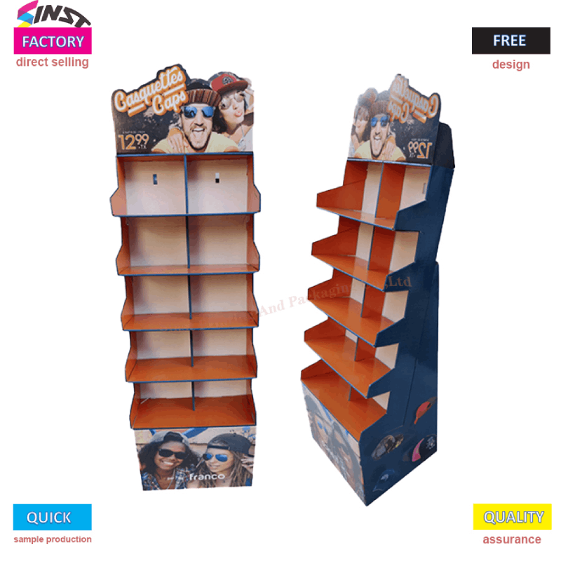 Pappkandiku põrandavitriiul supermarketi jaoks