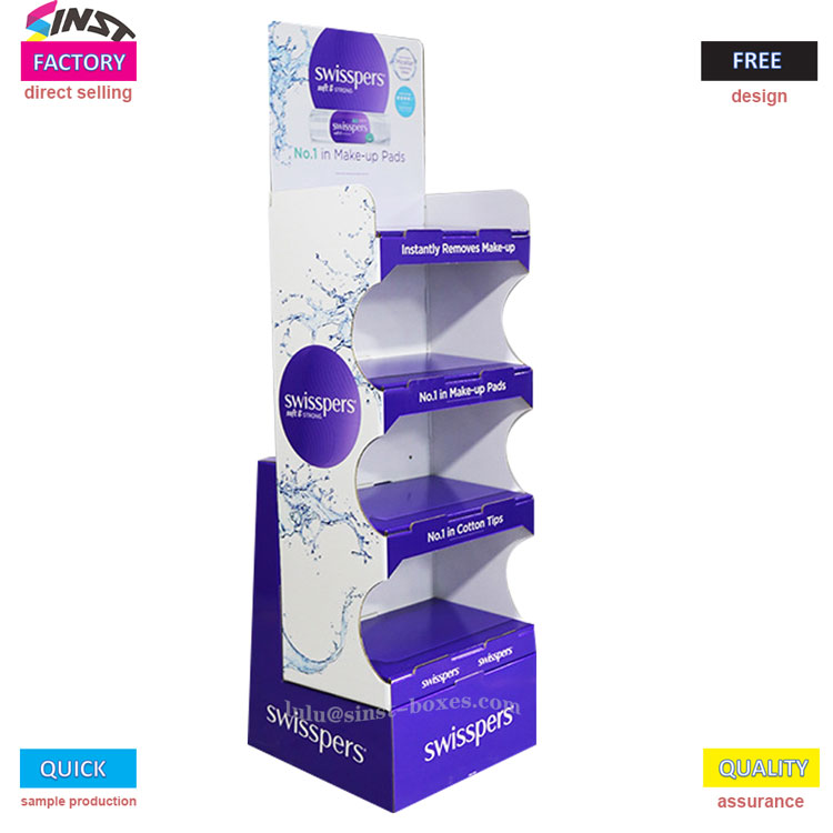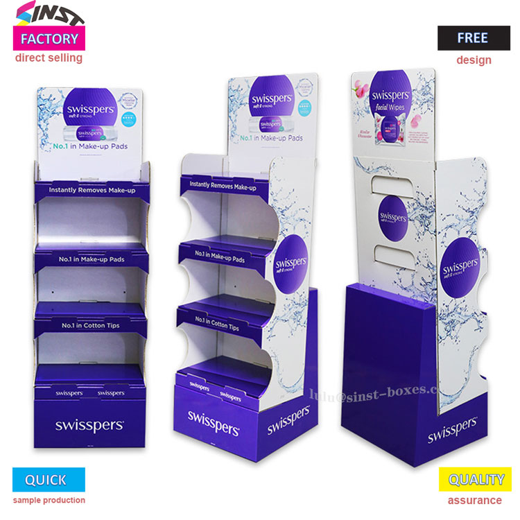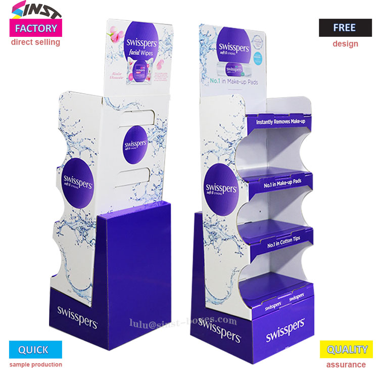Meie niiskete salvrätikute ekraaniriiulil on esiküljele trükitud suur veepihustusmuster ja lilla ovaalne ala. Vaheseinte alumised kihid on tähistatud lillade siltidega, millel on kirjas "Kiire meigieemaldus", "Populaarseim meigipuuvillamüük" ja "Populaarseim vatitupsude müük". Allosas olevad sildid on väikese suurusega, kuid need on kõik toote eelised.